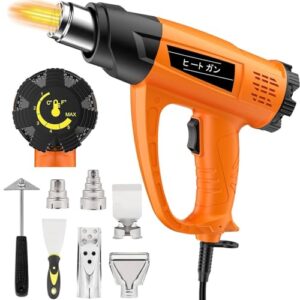 ヒートガン、1800W高速ヒートアップ、150.0 °C~1500°F、コンパクトボディで頑丈、リアマウントスイッチによる安定したデュアル温度設定、クラフト、シュリンクチューブ、ビニールラップ、4ノズル(イエロー)