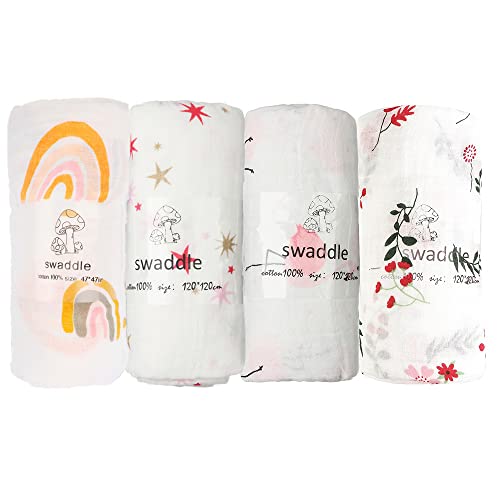 おくるみ ガーゼ ベビーバスタオル 新生児 ベビーブランケット 授乳ケープ 赤ちゃん スワドル 出産祝い 4枚セット 120*120㎝ 綿100% (ピンク系4枚セット)