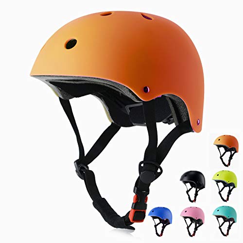 shuangjishan 自転車ヘルメット 子供 大人兼用 スポーツヘルメット 調節可能 軽量ヘルメット頭囲(48-61cm) ヘルメット 通学 男女兼用 (オレンジ, M(54cm-57cm))の高価買取