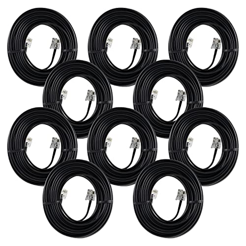 Power Gear 電話回線コード 10パック 25フィートは電話機、モデム、ファックス機に対応。モジュラージャックエンド付きで、自宅やオフィスで便利なブラックカラーです。