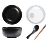 [えみり] キッチン用品 どんぶり 食器 茶碗 ラーメン丼 蓋付き 箸 スプーン 4点セット 和食器 ご飯 ボウル 食洗機/電子レンジ対応 (セットC)