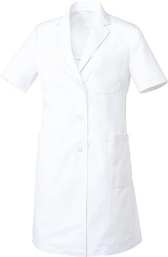 ユナイトの女性用半袖ドクターコートは、通気性に優れ、まとわりつかず快適な着心地。制電機能付きで、S~3Lのサイズ展開、清潔感のあるホワイト色。汗をかいても安心です。