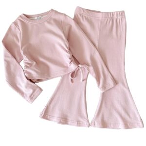 [YumeFlair] 子供服 女の子用長袖セット フレアパンツ トップス ズボン ファッションルームウェア 無地 2点セット カジュアルパジャマ 通気性 快適 綿 春 秋 冬 ピンク 130 [並行輸入品]