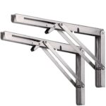 Homemeの棚受け金具はL字型で、SUS304ステンレス鋼製。2本セットで、耐荷重は80kgです。棚の支えやブラケットとして使用可能で、折りたたみ機能も備えています。