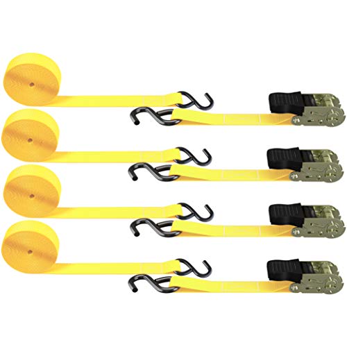 Ohuhuの荷締めベルト4.5m 4本セット。破断荷重680kgで耐久性があり、引越しや運搬に最適。ラチェット式で簡単に締付可能。多用途に使える固定バンドです。