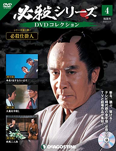 必殺シリーズDVDコレクション 4号では、必殺仕掛人の第10話から第12話を収録。分冊百科形式で、DVD付きの特別なアイテムです。ファン必見の貴重なコレクションです。