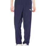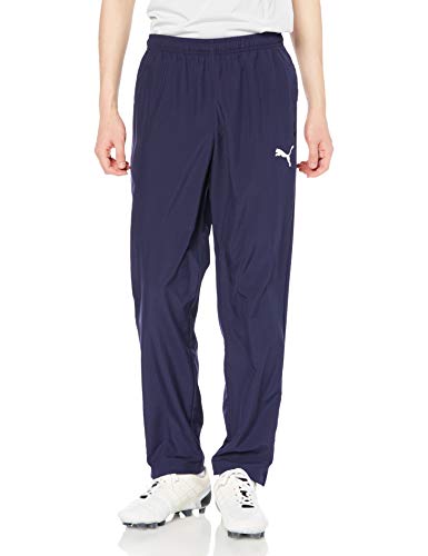 PUMAの吸水速乾ジャージパンツTEAMRISE。ウーブン素材で快適な着心地。メンズ用の24年秋冬カラー、ピーコートとホワイトの組み合わせ。同サイズはMで、スポーツやカジュアルに最適です。
