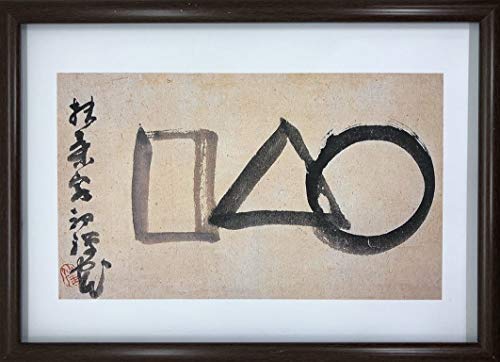 仙厓義梵の名作「○△□図」をA4サイズに額付きで提供。輸送用に適したホビーおもちゃグッズで、禅僧の教えを感じるインテリア。悟りを象徴する丸、三角、四角のシンプルなデザインが魅力。