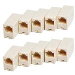 RJ11電話ケーブルの延長用中継器。6極4芯/2芯対応の6P4Cおよび6P2Cモジュラーコネクタを10個入りで提供。電話線の配線に便利なアダプタです。