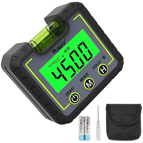 Hueparデジタル角度計AG01は、バックライト付きで視認性が高く、マグネットで簡単に取り付けが可能です。傾斜計や水平器として使用でき、日本語取説も付属しています。コンパクトで使いやすいデジタルレベルです。