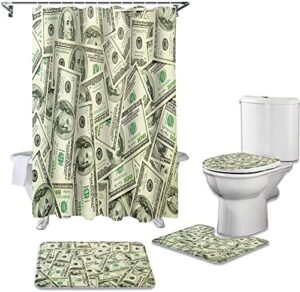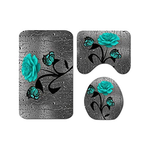 フラップバタフライプリントシャワーカーテン4ピースセット。カーペット、トイレカバー、バスマットが含まれ、浴室を華やかに演出。12フック付きで取り付けも簡単。