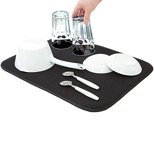水切りマットは抗菌・速乾性に優れたマイクロファイバー製で、食器を効率的に乾燥させます。サイズは35x45cm、ブラックカラーでスタイリッシュ。丸めて収納でき、キッチンに便利です。Sanleaves製。