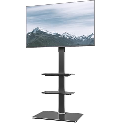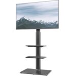 HemuduユニバーサルフロアTVスタンドは、19〜42インチのフラットスクリーンTVに対応。100度回転、調整可能な高さと傾斜、3つの棚付きで、快適な視聴を提供します。
