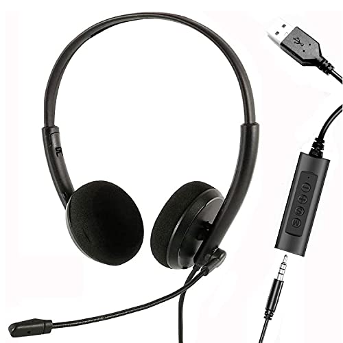 ノイズキャンセリング ヘッドフォン ヘッドセット マイク 3.5mm QD + USB接続用コード 軽量 通話 ビジネス Web skype 会議 在宅勤務 音楽を聴く ビデオチャット ヘッドフォン Android & iphone & PC &PS3対応の高価買取ITEM
