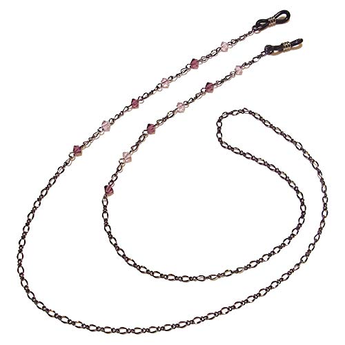 スワロフスキーのグラデーションカラーのメガネチェーンです。紫色の美しいデザインが特徴で、シリコン素材を使用しており、女性へのギフトやプレゼントに最適です。