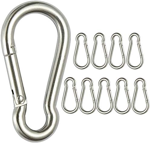 JOLIRSBOXのカラビナは、ステンレス製で耐久性が高く、スプリングフックタイプ。4cmサイズで、便利な10セット。アウトドアや日常使いに最適です。