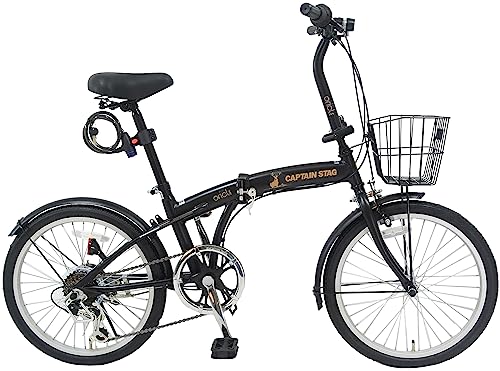 キャプテンスタッグの20インチ折りたたみ自転車Oricleは、シマノ6段変速、バッテリーライト、ワイヤー錠、前後泥よけを標準装備。マットブラックのスタイリッシュなデザインで、利便性とデザイン性を兼ね備えています。
