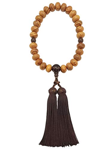 京念珠 男性用 数珠は、屋久杉のミカン玉と茶水晶を使用し、正絹房が特徴です。桐箱に入っており、すべての宗派でご使用いただけます。