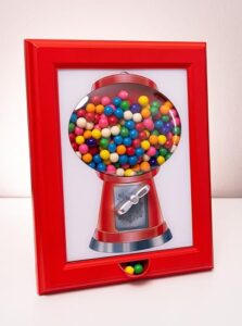 アイキャンディフレーム、キャンディーディスペンサー、ガムボールマシン、フレーム入り、キャンディー、ナッツ、犬&猫のおやつ用、壁に掛けたり、テーブルに立てたり、誕生日やホリデーギフト、すべての年齢向け、ラージ15インチ x 12インチ (ブルー)