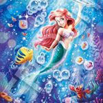 エポック社の300ピースジグソーパズル「アリエル -スパークリングシー-」は、サイズ26×38cmで、のり付き、ヘラ付き、デコレーションパーツも付いています。ディズニーファンにぴったりのアイテムです。