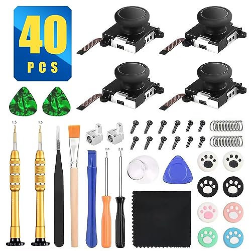 40in1 Joy-con専用修理キットは、Switch NS Joy-conのためのフルセット工具です。右・左ジョイコンの修理に必要な部品やドライバー、3Dセンサーアナログジョイスティック4個、親指キャップ8個も付属しています。