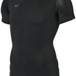 ミズノのコンプレッションシャツ(2021年モデル)は、吸汗速乾性とストレッチ性に優れ、紫外線カット機能も備えています。丸首半袖デザインで、ブラック(マット)のカラー、サイズはLです。