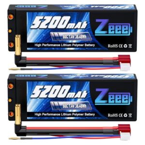 ゼエエ Zeee 7.4V 80C 5200mAh 2S lipo battery リポバッテリー RC 大容量バッテリー ラジコン製品バッテリー RCカー用 ラジコントラック用 無人機用など (Φ4mmゴールドプラグ Tプラグ付き)(2パック)