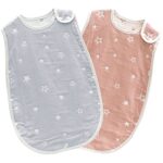 スリーパー2枚セットは、ほどよい厚さで年中使用可能。冷房対策に最適で、6重ガーゼ素材は洗濯後もふわふわです。新生児やベビーにぴったりで、夏、春、秋におすすめです。