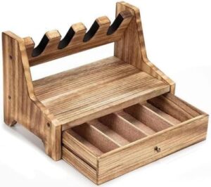 ZorTery ハンドガンラック ハンドガンスタンド おもちゃの銃スタンド ピストルラック 無垢材 引き出し付きガンスタンド モデルガン ハンドガン風玩具 ガンアクセサリー収納ボックス コレクター ハンドガン用 18歳以上 贈り物 (A,4スロット)