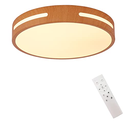 Herischen ledシーリングライト 30Wは、木目調の和風デザインで薄型。無段階調光・調色機能付き、リモコン操作可能。全灯・50%・常夜灯のモードがあり、屋内の和室や洋室、居間、寝室に最適です。
