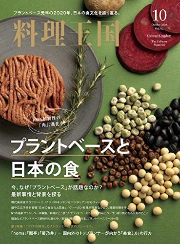 料理王国2020年10月号では、プラントベースの食材や料理法、日本の伝統的な食文化との融合が特集されています。具体的な製品情報やレシピも紹介され、健康や環境への配慮がテーマにされています。