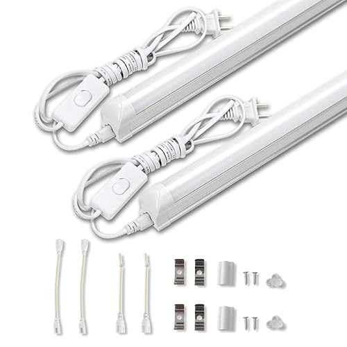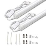 LED蛍光灯40W形、器具一体型のT8 LED直管(18W)。昼光色(6000K-6500K)で、120cmの天井照明。工事不要・軽量、連結コード付属、スイッチ付き。2本入りセット。