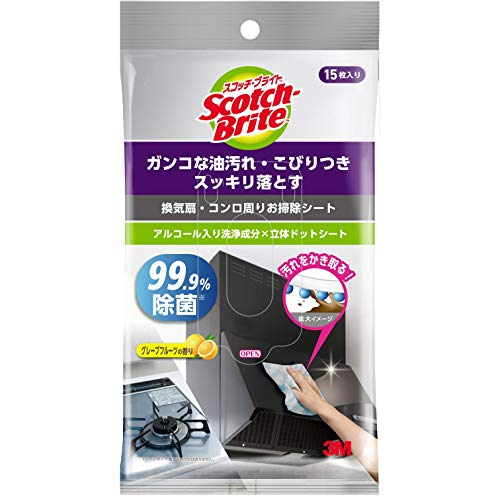 3Mキッチンお掃除シートは、換気扇やコンロ周りの除菌に最適。アルコール99.9%含有で、手軽にお掃除ができます。スコッチブライトブランドの品質保証付きで、キッチンの清潔を保ちます。