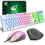 LexonTech ゲーミングキーボード 日本語配列 USBメンブレン式 有線 防水多機能マルチメディアキー 2400DPI調整でき 6つのボタン + マウスパッド (ホワイト)の高価買取