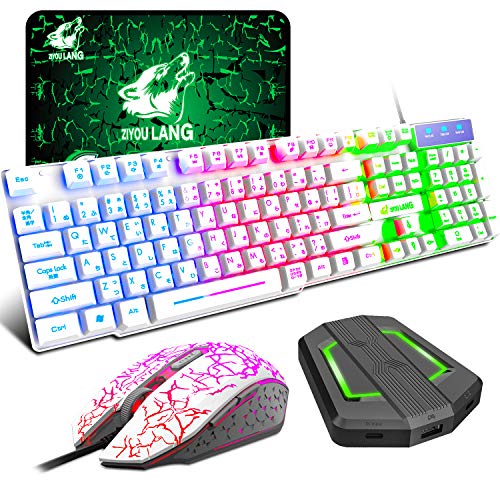 LexonTech ゲーミングキーボード 日本語配列 USBメンブレン式 有線 防水多機能マルチメディアキー 2400DPI調整でき 6つのボタン + マウスパッド (ホワイト) 高価買取中