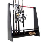 ドレスの木製ロッドスタンドは、最大10本の釣り竿を収納可能で、おしゃれなブラックデザインが部屋のインテリアに最適です。釣り具の整理とスタイリッシュな見せ方を両立させるアイテムです。