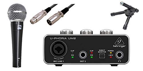 BEHRINGER UM2オーディオインターフェイスは、1つのマイク入力と楽器入力を備え、高品質な音声録音を実現。付属のマイクセットで、簡単に録音・配信が可能です。