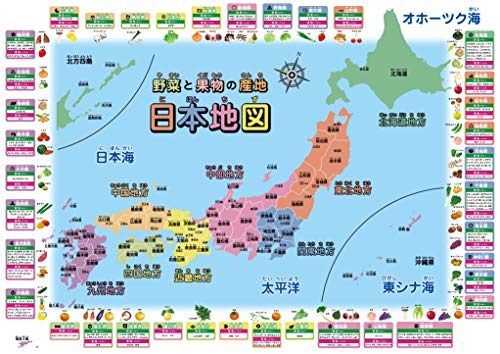 お風呂学習ポスター 日本地図(野菜と果物の産地)は、サイズ60×42cmの大型ポスターです。全国の野菜や果物の産地がカラフルに表示され、楽しく学べるデザイン。お風呂や子ども部屋に最適です。