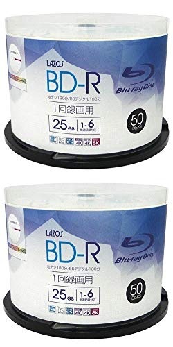 Lazos BD-R 25GBは1-6倍速で記録可能なBlu-rayディスク。ホワイトワイド印刷対応のため、ラベル印刷にも最適。50枚入りスピンドルケースで、2個セットの便利なパッケージです。