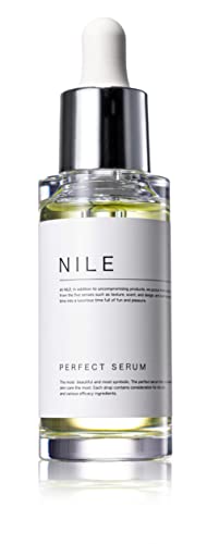 NILE 美容液 パーフェクトセラムは、毛穴ケアに特化したレチノール、ナイアシンアミド、ビタミンCを配合。ムスクの香りで心地よい使用感を提供し、肌の明るさと滑らかさをサポートします。