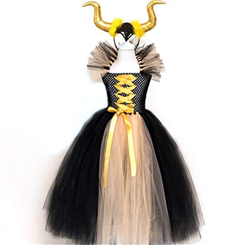 邪悪な女王をテーマにした子供用コスプレ。チュチュと頭飾り、翼付きで、ハロウィンやお祝いに最適な黒ドレス。カラーはカーキ、サイズは10-12歳用です。