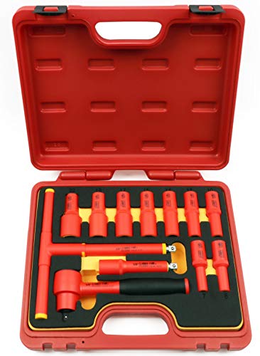 Koshihara 差込角セット 9.5mm(3/8インチ)は、VDE認証の絶縁工具セットで、HV・EV用に対応。最大1000Vの安全性を備えた12本組のソケットレンチセットで、台湾製です。