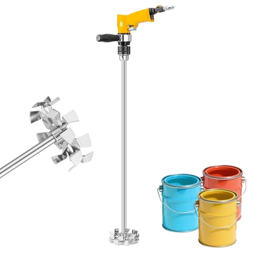 Hanchenの自動空気圧塗料ミキサーは、直径10cm、長さ70cmで、モルタルや樹脂など多用途に対応。分散ディスク式で効率的に攪拌可能。日本語説明書付き。