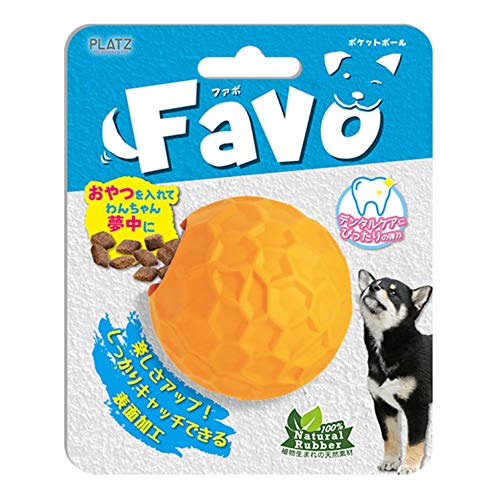 PLATZ PET SUPPLIES&FUNの犬用おもちゃ、知育トーイFavoポケットボールは、オレンジ色のボール形状で、犬が楽しみながら知育できる設計。噛んでも安心な素材で、運動不足解消にも最適。