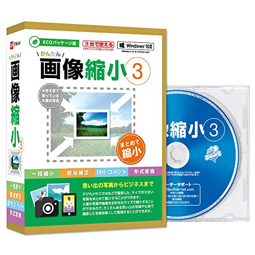 かんたん画像縮小3 3ライセンス版【ECOパッケージ】は、デジカメやスマホの写真を一括で縮小し、データ容量を軽減するソフトです。旅行や仕事、こどもの思い出を手軽に管理できます。