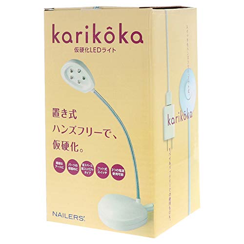 ビューティーネイラーの仮硬化LEDライトKA-1は、本体、AC電源アダプター付きUSB接続コード、取扱説明書がセットになっています。手軽にネイルの仮硬化ができます。