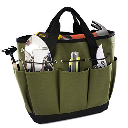 XiaoYangガーデンツールバッグは、8つのポケットを備えた頑丈な収納バッグです。暗緑色で耐久性があり、再利用可能。家庭でのDIYやガーデニングに最適です。