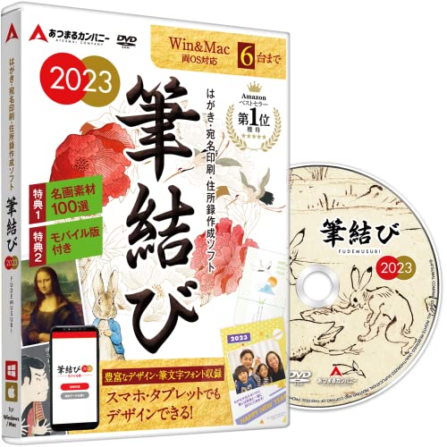 年賀状や住所録の宛名印刷が簡単に行えるソフト「筆結び 2023 Win&Mac版」は、最新の機能を搭載し、6ライセンスが含まれています。操作も簡単で、WindowsとMac両方に対応。
