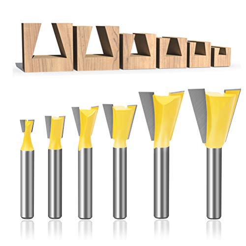 Wolfride 6本セットの超硬刃ルーター・トリマービットは、1/4インチシャンク径で工業級品質。アリ錐やアリ溝ビットを含み、木工用に最適です。切削工具や戸板彫刻にも対応。