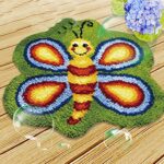 キッズ初心者向けラッチフックキット。蝶の形デザインのDIYクッションカーペット。サイズは50×50cmで、楽しく創造力を育むアイテムです。